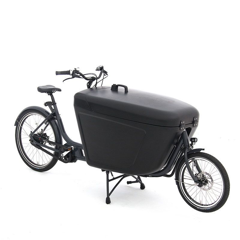 Das Transportfahrrad hat eine abgerundete, robuste Transportbox. Ein solides Schloss und eine wasserdichte Transportbox ermöglichen einen sicheren Transport von Waren. Mit Hilfe eines stabilen Griffs lässt sich die Transportbox leicht öffnen und schließen. Der Deckel lässt sich auf der Lenkerseite öffnen, so dass man die Waren sofort nach dem Absteigen aus dem Lastenfahrrad entnehmen kann. Das Transportfahrrad mit 2 Rädern verfügt dank des leistungsstarken Yamaha-Mittelmotors mit Kraftsensor und wartungsfreier, stufenloser Gangschaltung über eine moderne Pedalunterstützung.