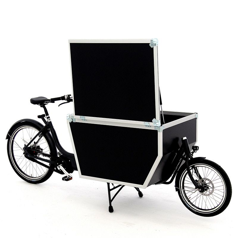 Aufgrund seiner geraden Formen eignet sich der Flightcase sehr gut für den Transport von Paketen und Kisten. Mit einem stabilen Griff öffnen Sie die Transportbox an der Seite. Das solide Schloss sorgt dafür, dass die Transportbox sicher schließt, wenn Sie das Fahrrad irgendwo abstellen. Das Lastenfahrrad mit 2 Rädern verfügt dank des leistungsstarken Yamaha-Mittelmotors mit Kraftsensor und wartungsfreier, stufenloser Gangschaltung über eine moderne Pedalunterstützung.